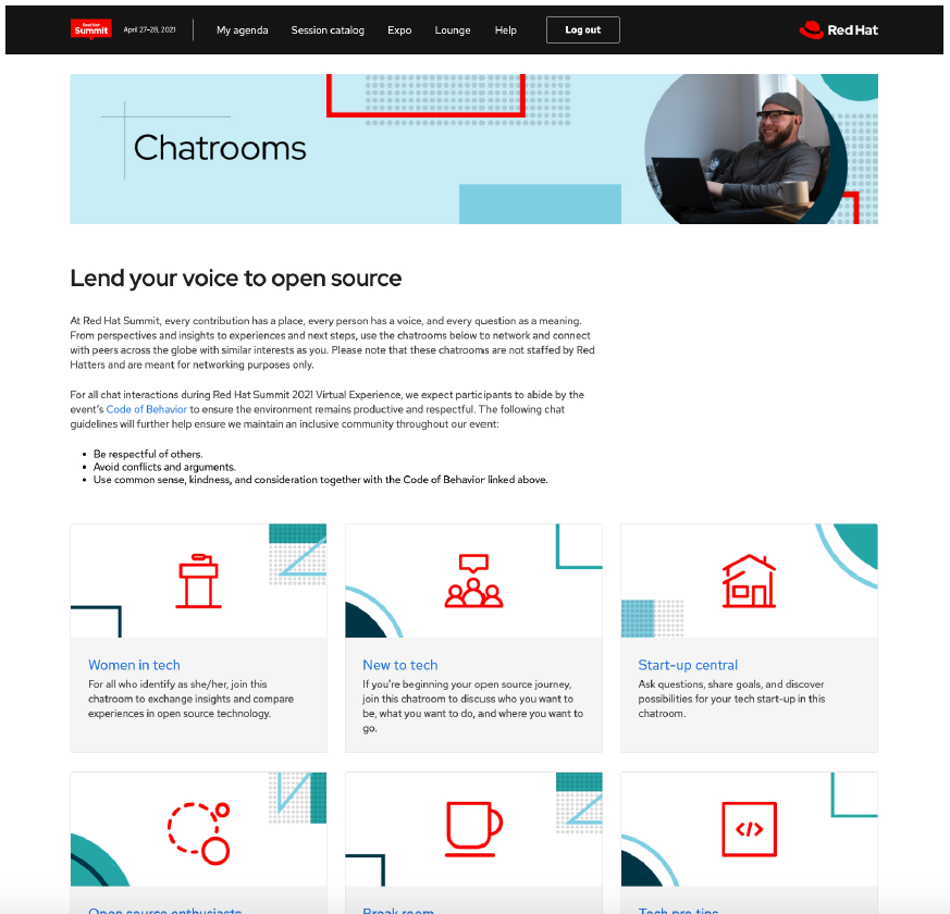 After we had the first Red Hat Summit Virtual Experience under our belt in 2020, we set out almost immediately after to start on Red Hat Summit 2021. I led all efforts involving naming and theme messaging as well as: