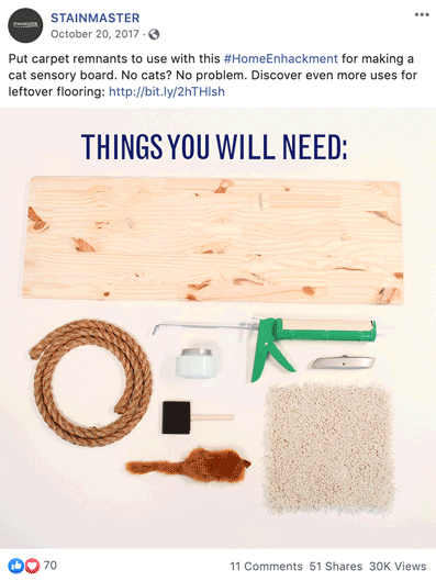 STAINMASTER was also the account to be on as it was one of the first to provide us with the opportunity to go all out on social media—and when I say “go all out,” we really did. We created engaging social content for Facebook, Instagram, and Pinterest to promote our evergreen content as well as series that provide STAINMASTER followers helpful tips and tricks to do around their home.